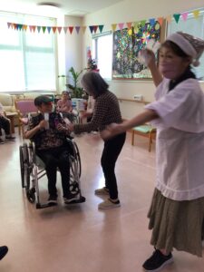 利用者様と一緒にクリスマスソングを歌って踊って、